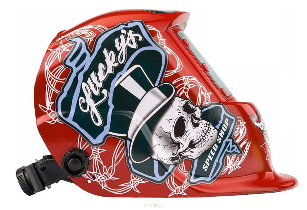 RED TECHNIC Avtomatska solarna naglavna varilna maska rdeča lobanja