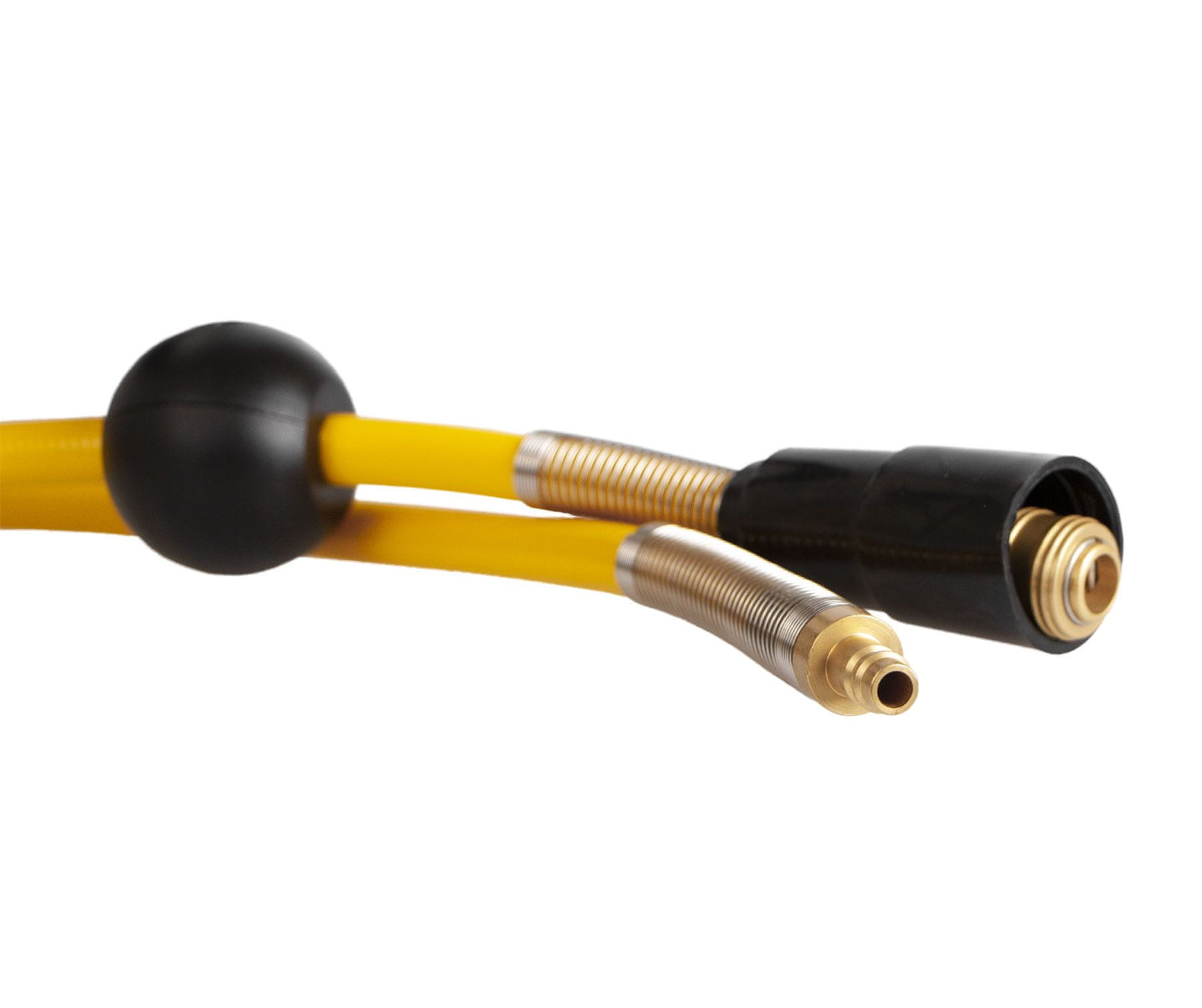 S koluta se cev enostavno odvija, v želeni dolžini pa se samodejno zablokira. S potegom za cev se blokada sprosti in cev se s pomočjo vzmeti navija nazaj na kolut. Na vir zraka se kolut priključi s visokotlačno cevjo dolžine 2 m.