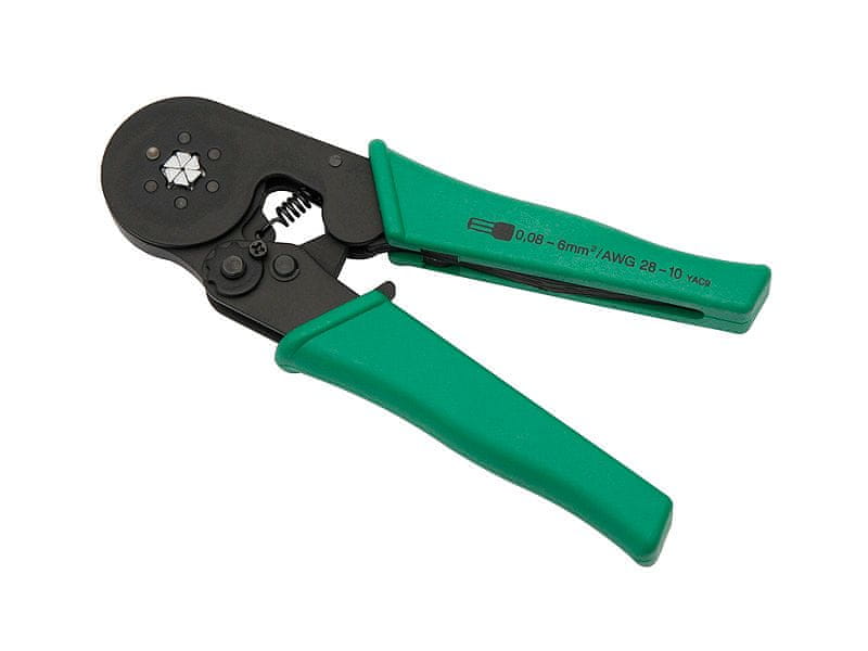 Profesionalno orodje za stiskanje tuljavnih konektorjev s funkcijo zaklepanja.UPORABA:- Konektorji: za AWG min: 10, max: 23– Premer stiskanja: za AWG: 10, max: 23– Premer stiskanja: 1: Tehnični podatki:- Material: CS, PVC- Teža: 420g- Dolžina: 175mm- Zaklepanje: DA. Silo vpenjanja je mogoče prilagod Celoten opis