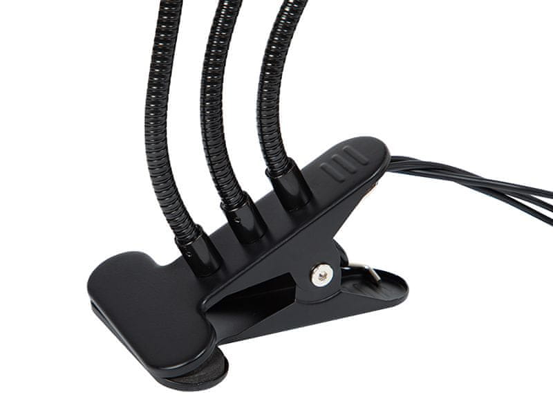 Svetilka LED s tremi glavami je opremljena z rdečimi, modrimi in rdeče-modrimi lučmi LED, tako da ima celoten spekter infrardeče in ultravijolične svetlobe za spodbujanje fotosinteze rastlin. Svetilka ima vgrajeno sponko in se napaja prek USB. Ta izdelek je opremljen s časovnikom in ima do 9 načinov svetlosti.