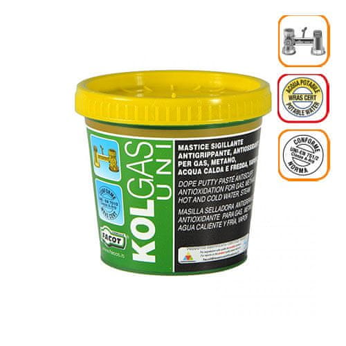 KOLGAS-UNI je vrhunska temno zelena tesnilna pasta, ki zagotavlja dolgotrajno in zanesljivo tesnjenje navojnih in gladkih spojev. Njena edinstvena formula na osnovi petrolejskih maščob z visoko tališčem in inertnih polnil omogoča mehko in elastično strukturo, ki se ne suši in ne spreminja skozi čas.