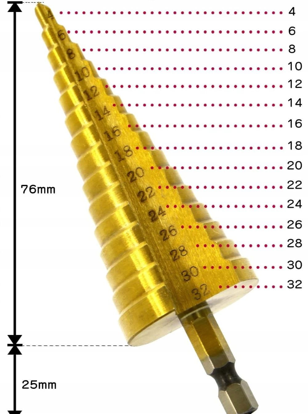 Predstavljamo vam visokokakovostni set stožčastih stopnjastih svedrov Kraftverk, izdelanih iz hitrezorečega jekla (HSS), ki je idealen za natančno vrtanje v raznovrstne materiale. Zahvaljujoč dodatni prevleki iz titana, svedri nudijo podaljšano življenjsko dobo, hkrati pa zagotavljajo izredno trpežnost pri uporabi.