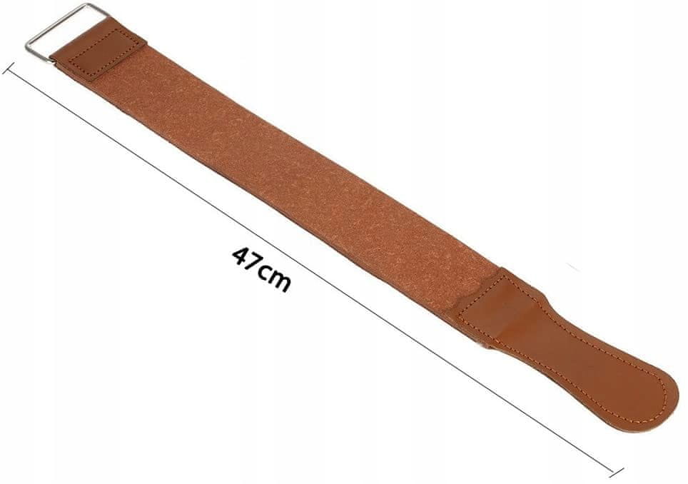 Kraftverk Usnjeni Pas za Brušenje in Poliranje je visokokakovosten pripomoček, namenjen izpopolnjevanju in poliranju britvic. Ta izdelek je idealna izbira za profesionalne brivnike ter tiste, ki cenijo nego in natančnost tudi v domačem okolju. Pas je izdelan iz debele naravne ekološke kože, dopolnjen z drugo plastjo iz recikliranega bombaža, kar zagotavlja vzdržljivost in učinkovitost. Za enostavno uporabo, pas vključuje ročaj in držalo, ki omogočata udobno obešanje in rokovanje. Meritve pasu so optimalne za izdatno pokritost in manevrski prostor: dolžina 47 cm, širina 5 cm, debelina 2 mm. Ta klasičen, profesionalen pas učinkovito gladi, polira in ostri britvice pred uporabo ter po njej, očisti ostrino za ponovno popolno uporabo. Redna uporaba tega pasu zagotavlja, da vaše britvice ostanejo popolnoma ostre skozi dolga leta, kar prinaša dolgotrajno zadovoljstvo in zanesljivost. Izberite Kraftverk Usnjeni Pas za Brušenje in Poliranje za izvrstno nego vaše opreme in zagotovite vrhunsko britje vsakič.
