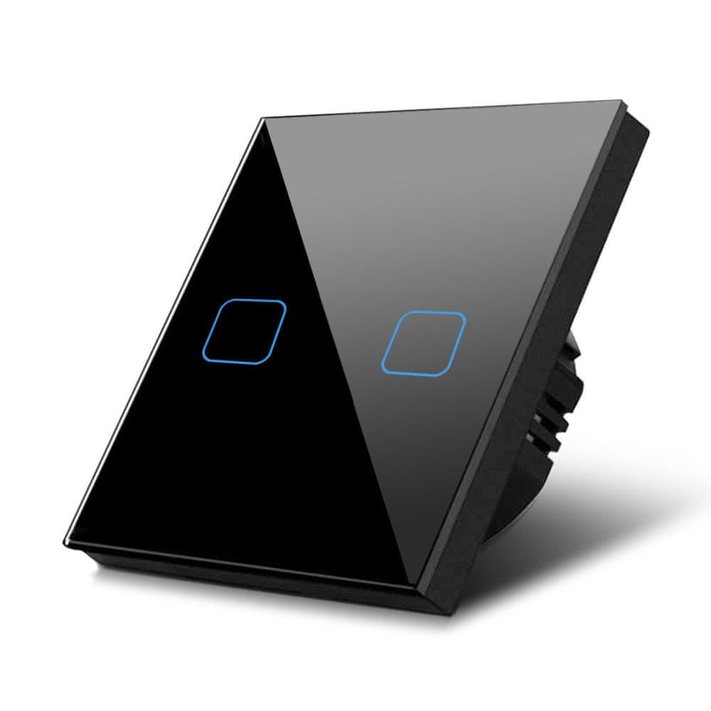 Maclean Maclean stikalo na dotik, dvojno, stekleno, črno s kvadratno osvetlitvijo gumba, MCE703B