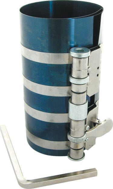 46865 Stiskalnik batnih obročev 90–175 mm, H=150 mm, ProlineOrodje nežno stisne obroče, dokler jih ni mogoče namestiti brez poškodb. Mehanizem s ključem in zaskočnim mehanizmom nadzoruje postopke vgradnje. Izdelano iz kaljenega vzmetnega jekla. Ključ je priložen orodju.Narejen iz s Celoten opis