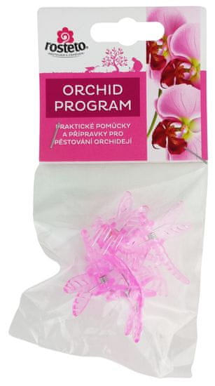 Okrasne sponke v obliki zmajčka se uporabljajo za pritrditev stebla orhideje na podporno palico. Pakirane so po 4 kosi v plastični vrečki z EURO tečaji – za obešanje na stojalo.