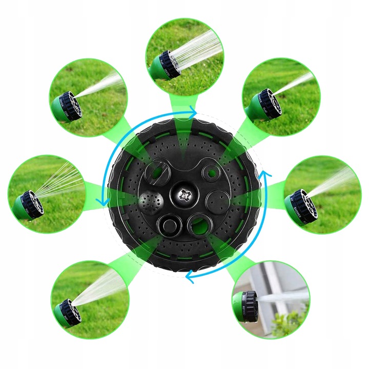 Komplet cevi vključuje zelo praktično razpršilo, z do 7 načini.