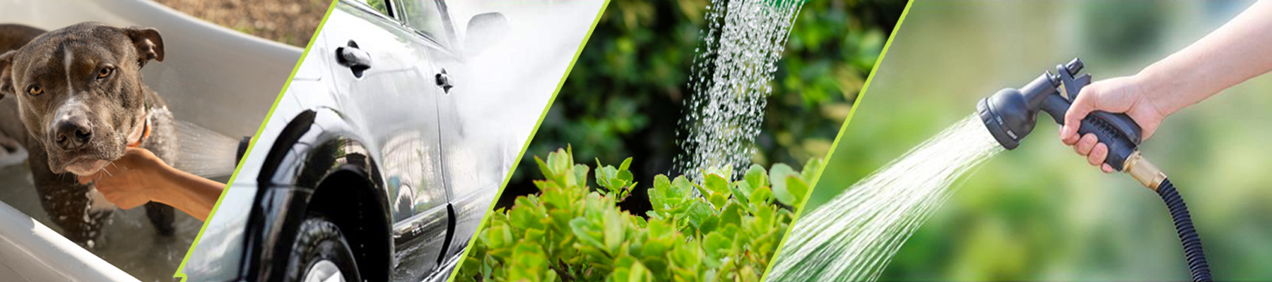 ⚫ praktična razpršilec z do 8 načini. Z njim lahko zalivate trato, rože, kopate hišne ljubljenčke in perete avto.