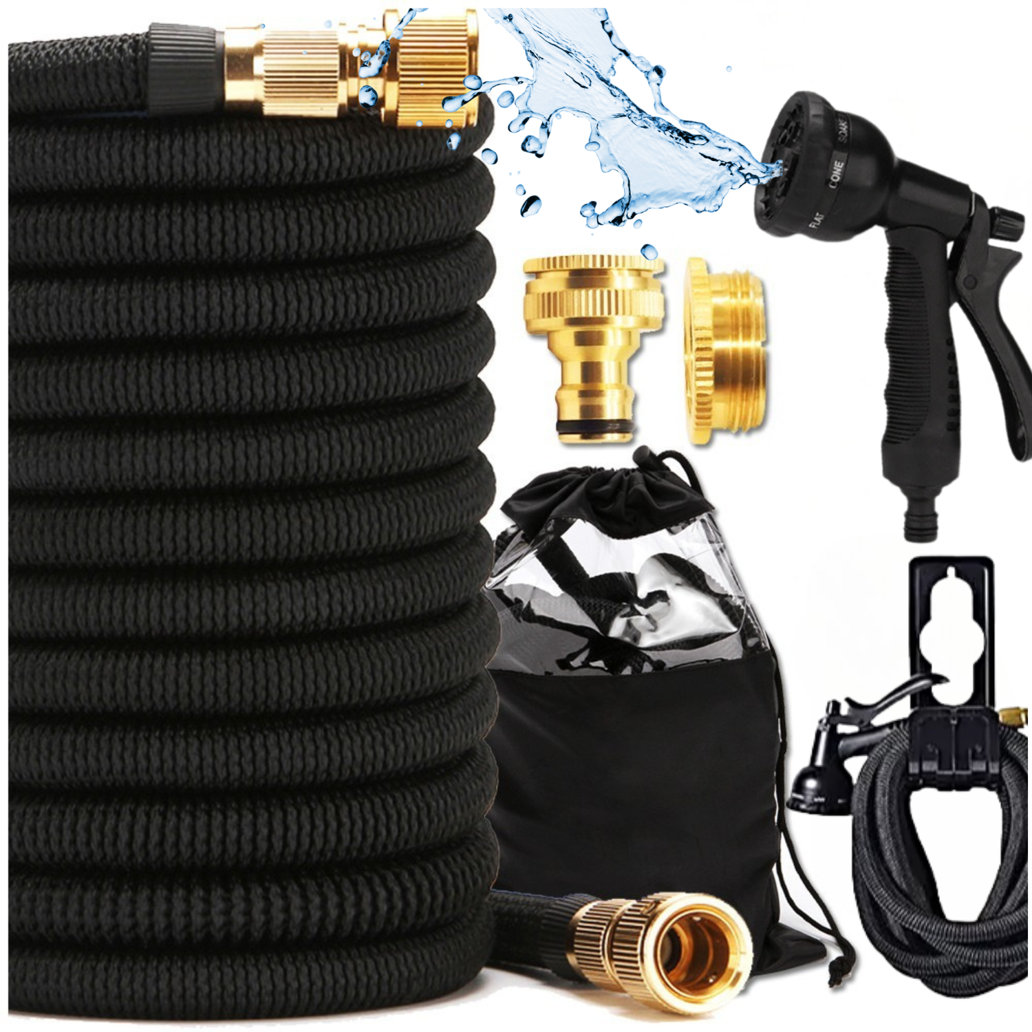 shumee Vrtna cev raztegljiva 10m-30m zalivalna pištola za škropljenje črna XL