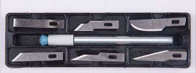 Komplet rezil za natančno obrezovanje. Zelo uporaben, npr. pri modeliranju.Lastnosti izdelka:Popolnoma nov.6 rezil različnih oblikLahko in hitro menjavanje rezil1 priložen ročaj – ustreza vsem rezilom.Ergonomsko izdelan, udoben za uporabo.Izdelan iz Celoten opis