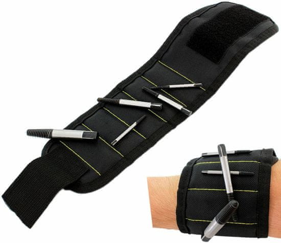 Profesionalna magnetna zapestnica z velcro nastavitvijo! Prisotnost magneta nam omogoča, da na roko priročno namestimo majhne kovinske predmete, do katerih moramo imeti stalen dostop. To je izjemno priročna rešitev, zaradi katere imamo vse vijake, matice, bite ali vtičnice vedno pri roki! Bistveno pospeši vsa delavniška in servisna dela, ko nam ni več treba izgubljati časa z iskanjem izgubljenih majhnih delov!