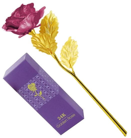 Večna vrtnica v zlati barvi z vijoličnimi cvetnimi lističi. V estetski kartonski škatli. Odlična ideja za valentinovo, rojstni dan ali nenavadno darilo :)Značilnosti in specifikacije izdelka:Večna vrtnica v zlati barvi z vijoličnimi cvetnimi lističi.V kompletu z estetsko prijetno kartonasto škatlo. Celoten opis