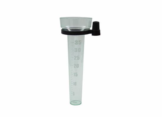 Deževnik 24 cm, z držalom. Lestvica do 35 mm padavin Dežomer z držalom, ki omogoča neposredno odčitavanje skupne količine padavin z lestvice, natisnjene na samem dežomeru. Celoten opis