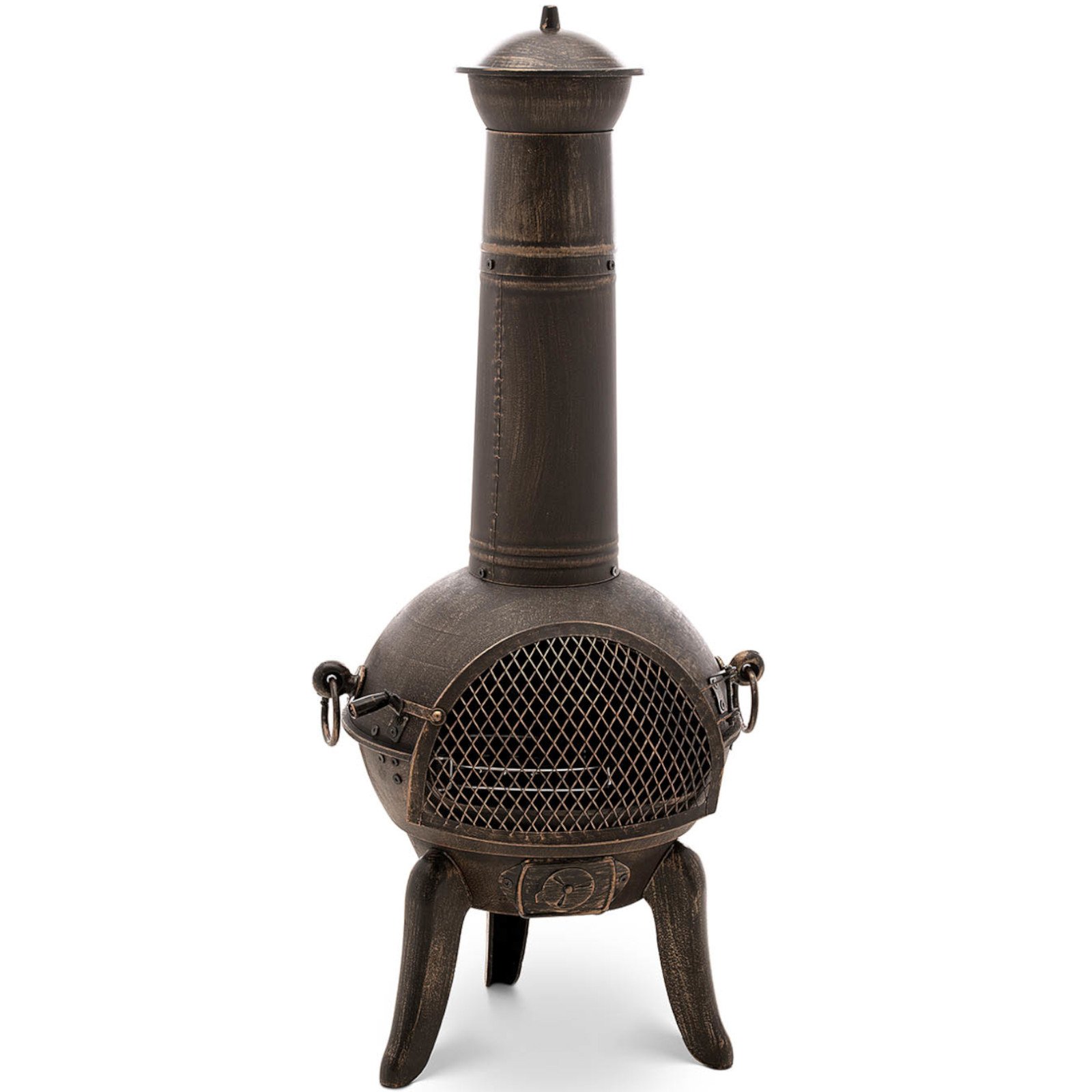 Kuhalnik za teraso Uniprodo zagotavlja prijetno toploto v hladnih poletnih nočeh in ustvarja prijetno vzdušje. Kuhalnik je izdelan iz litega železa, ki enakomerno absorbira in razporedi toploto ognja. Gorivo se nahaja na treh rešetkah s premerom 28,5/25/14,5 cm. Ti omogočajo ločevanje pepela, tako da plamen v štedilniku ne ugasne prezgodaj. Kot gorivo se lahko uporabljajo les, premog ali oglje. Priloženi pogrebnik omogoča enakomerno porazdelitev goriva v štedilniku. Vrata štedilnika so izdelana iz mreže. Odprta zasnova zagotavlja potreben dotok kisika, ne da bi pri tem uhajale iskre. Dolga dimna cev omogoča uhajanje dima navzven. V primeru dežja zaščitite cev kuhališča s pokrovom in preprečite, da bi se zunaj nabirala vlaga.