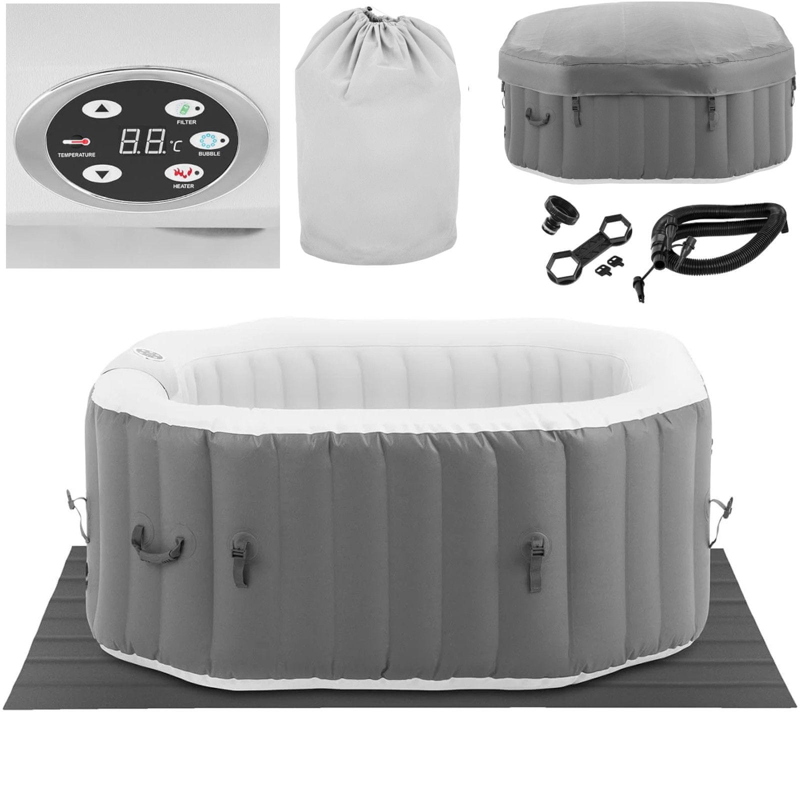 Uniprodo Vrtni jacuzzi napihljiv 110 masažnih šob 4 osebe 600 l sivo-bela