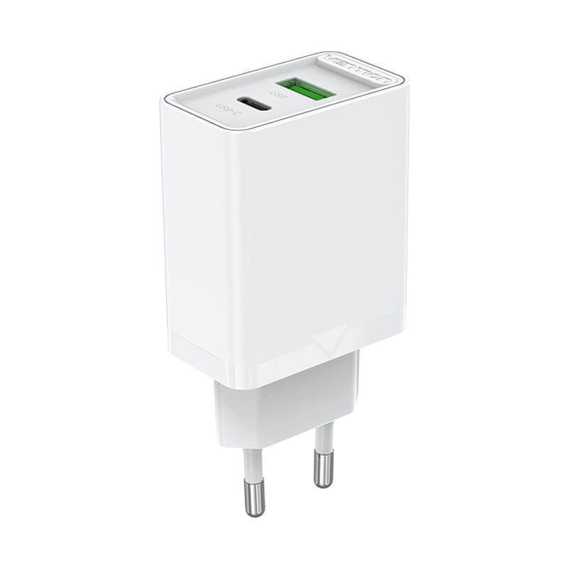 Ni se vam več treba omejevati. Omrežni polnilnik Vention je opremljen z dvema priključkoma (USB-A in USB-C), s čimer lahko hkrati obnovite energijo dveh naprav. Njegova izhodna moč doseže največ 20 W, zaradi podpore protokolom za hitro polnjenje pa ga odlikuje izjemna zmogljivost. Zagotavlja tudi vrsto varnostnih funkcij.