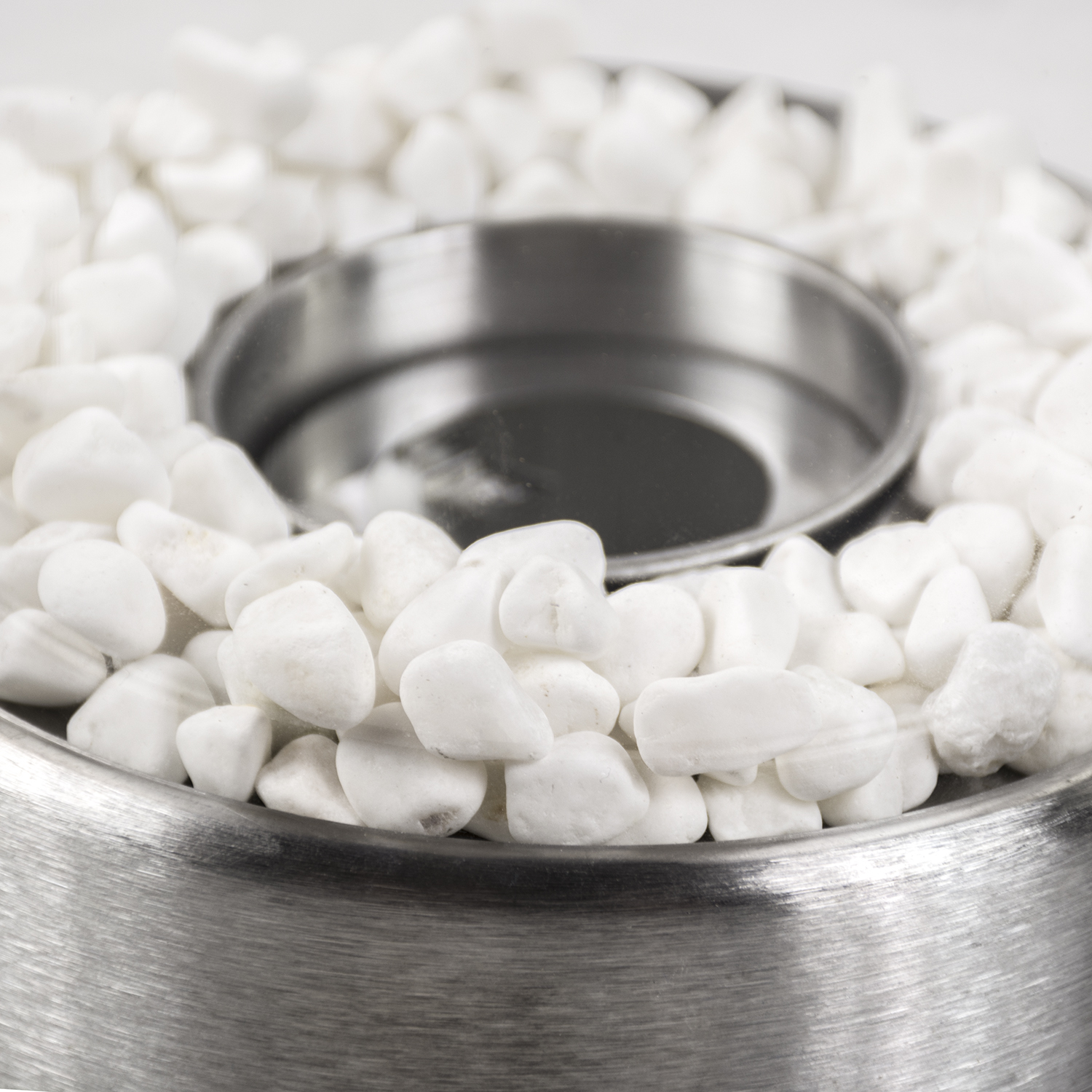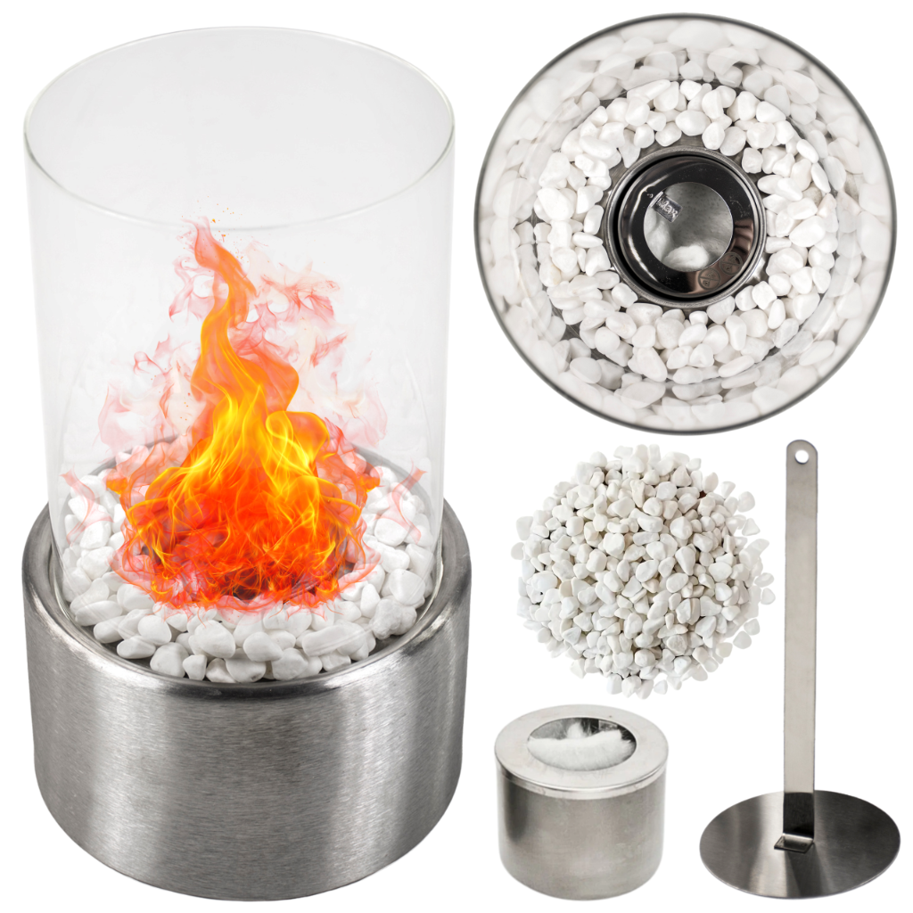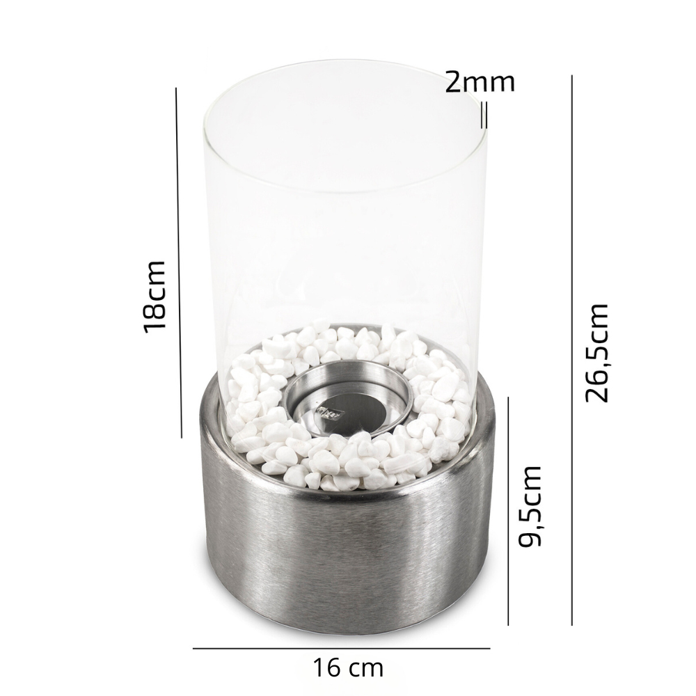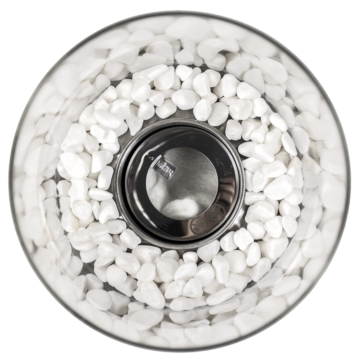, odporne na visoke temperature , da ne pride do razbarvanja med gorenjem. ✨ DEKORATIVNI KAMNI VKLJUČENI Biokamin ima okoli kurišča prostor za postavitev dekorativnih kamnov
