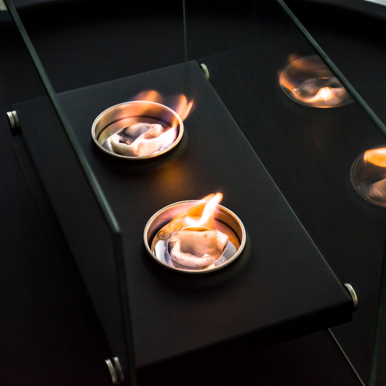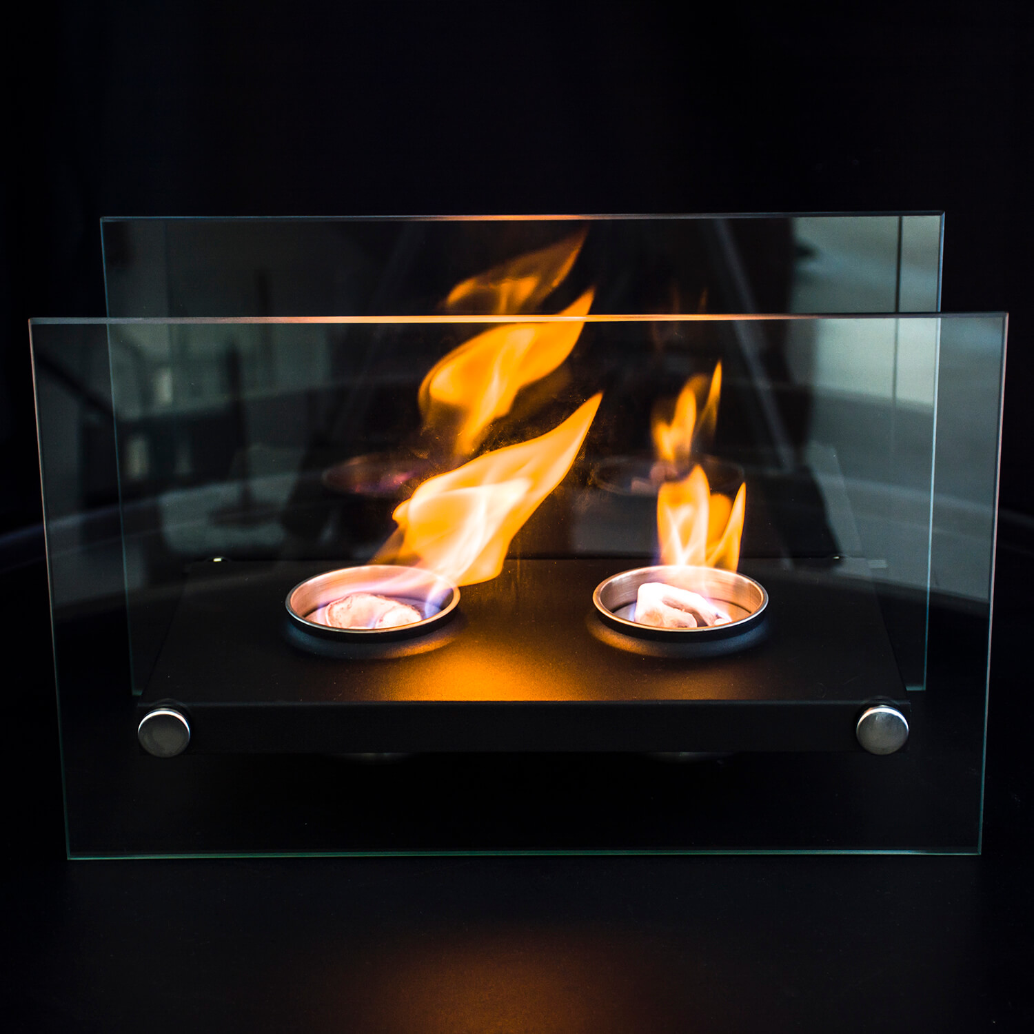 . Steklene plošče omejujejo neposreden dostop do ognja, zaradi česar je biokamin