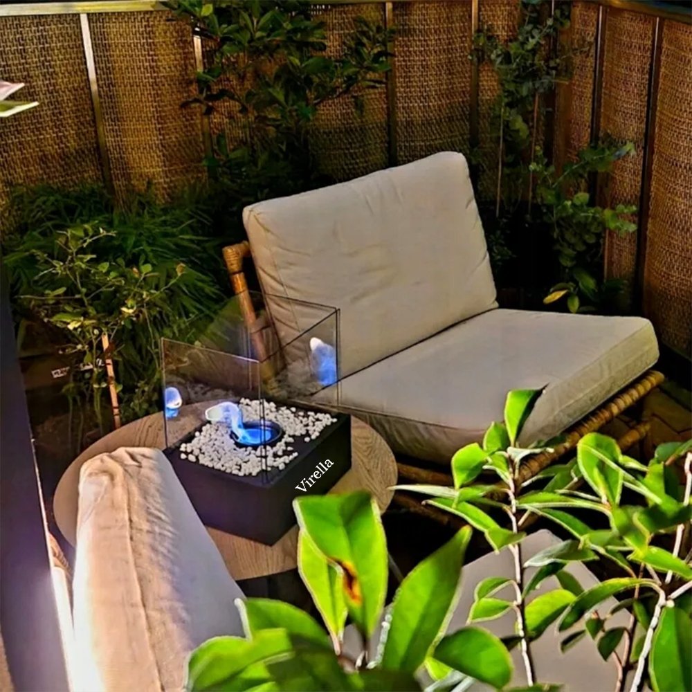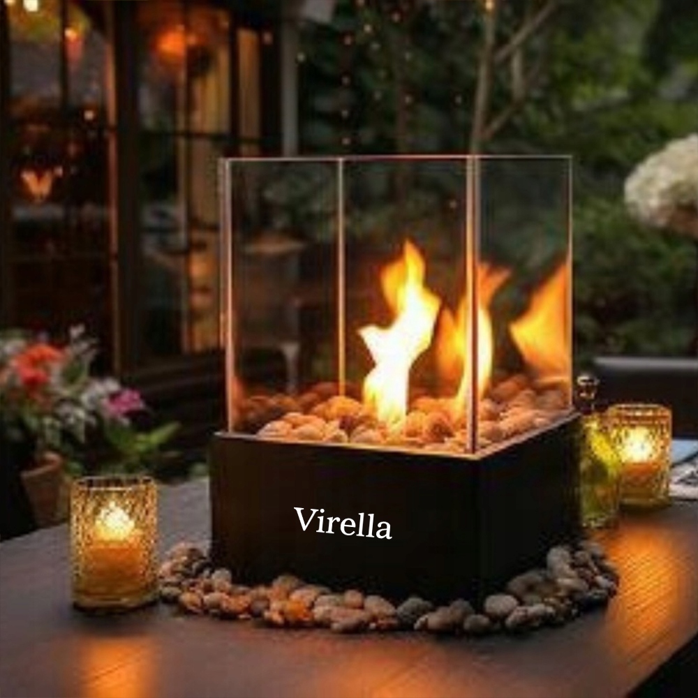 Biokamin Virella je eleganten, kompakten dodatek , ki ustvarja prijetno vzdušje na balkonu, terasi, vrtu in v zaprtih prostorih. Deluje brez dimnika, se ne umaže, ne smrdi – samo prižgite ga in uživajte v ognju.
