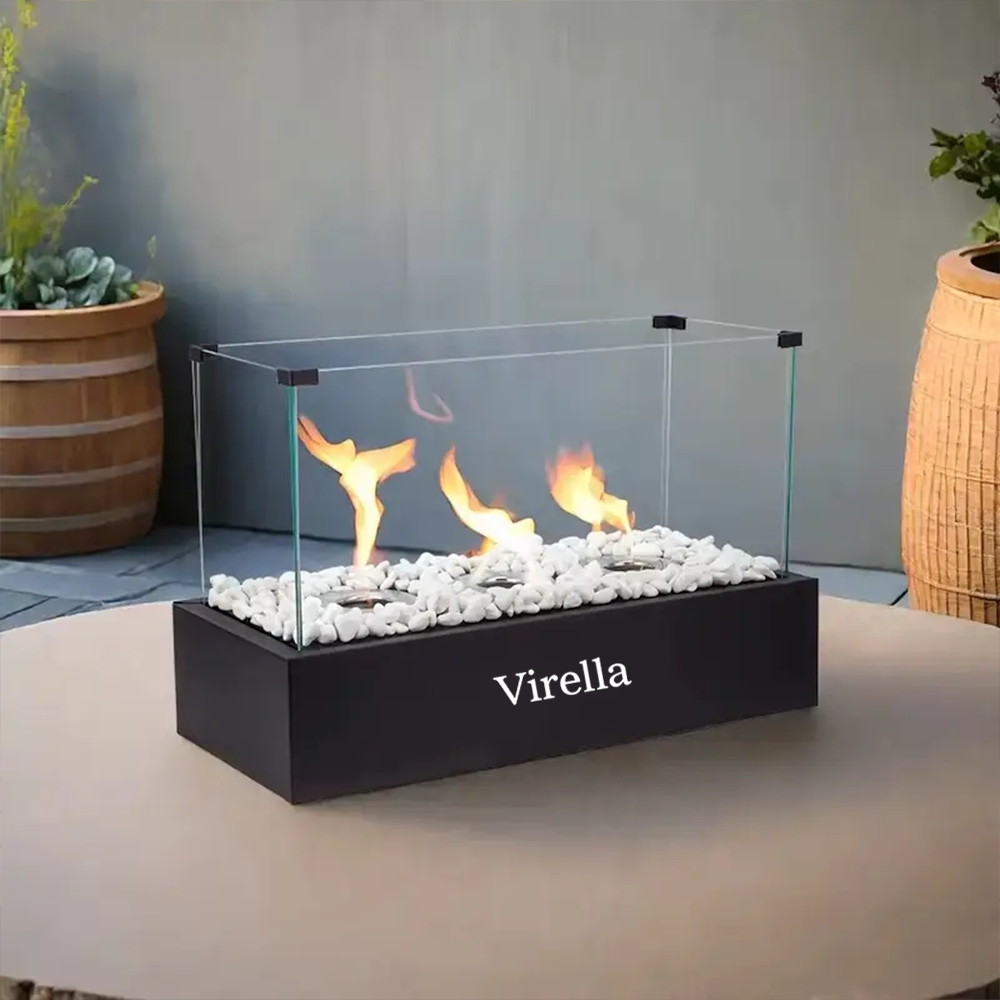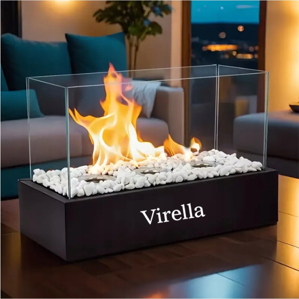 Biokamin Virella je eleganten, kompakten dodatek , ki ustvarja prijetno vzdušje na balkonu, terasi, vrtu in v zaprtih prostorih. Deluje brez dimnika, se ne umaže, ne smrdi – samo prižgite ga in uživajte v ognju.