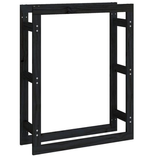 Vidaxl Stojalo za drva črno 80x25x100 cm trdna borovina