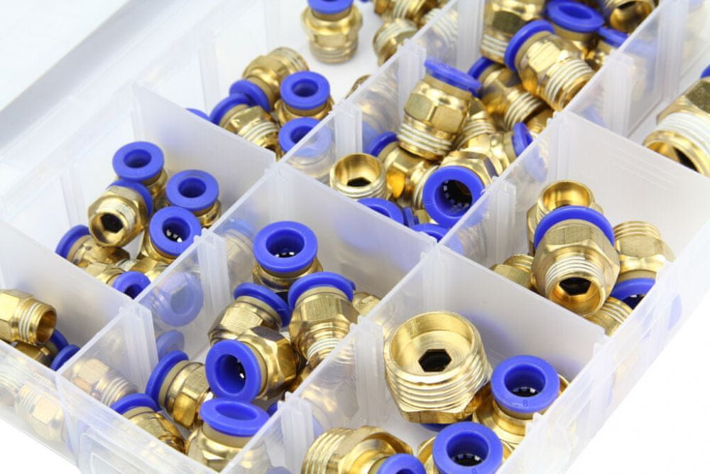 Pnevmatska spojka, direktni vtisni PC z zunanjim navojem, za PA, PU, PE cevi 4–16 mm, set 72 kosov MAR-POL