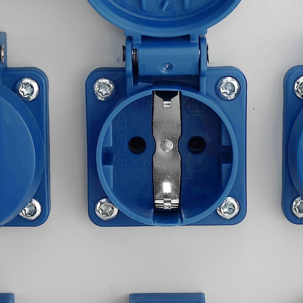• dvanajstimi 12× vtičnicami 230V 16A z zaščitnim razredom IP 54,