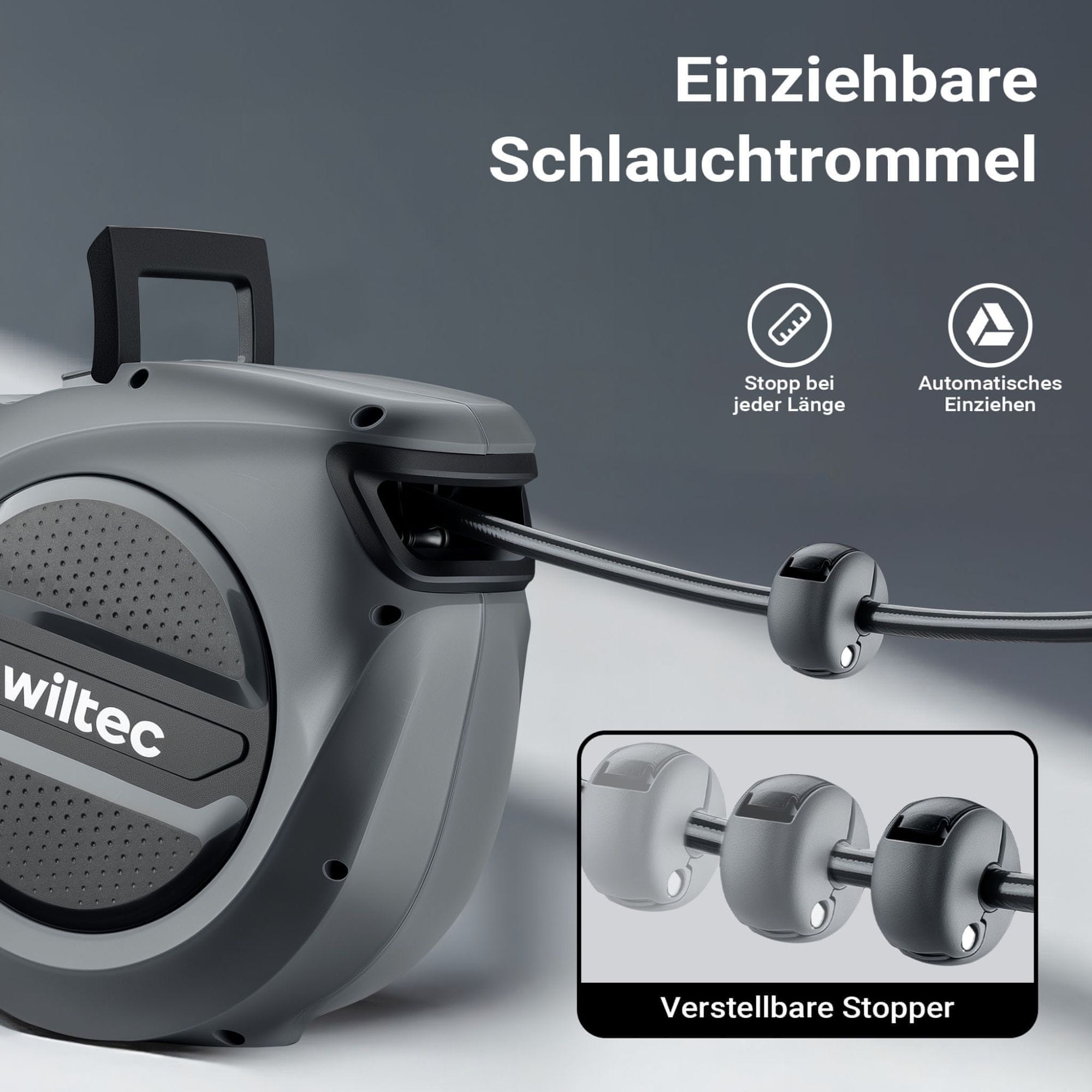 Wiltec kolut za cev za stisnjen zrak navdušuje s svojo robustno konstrukcijo in dobro zasnovano funkcionalnostjo. Izdelan je iz visokokakovostne plastike in ima vrtljiv nosilec, zato ponuja odlično stabilnost in je idealen za intenzivno uporabo v delavnicah in industrijskih okoljih. Zahvaljujoč samodejnemu navijanju cevi je cev za stisnjen zrak po uporabi lepo in urejeno navita.