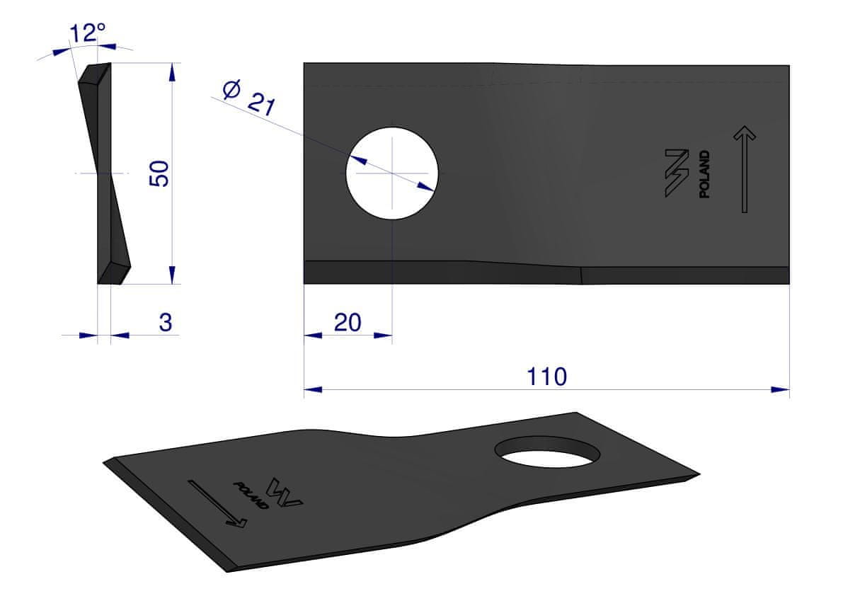 Levi kosilni nož 110×50×3mm luknja 21 aplikacija 4047016 Galfre WARYŃSKI (prodano po 25 kosov) Celoten opis