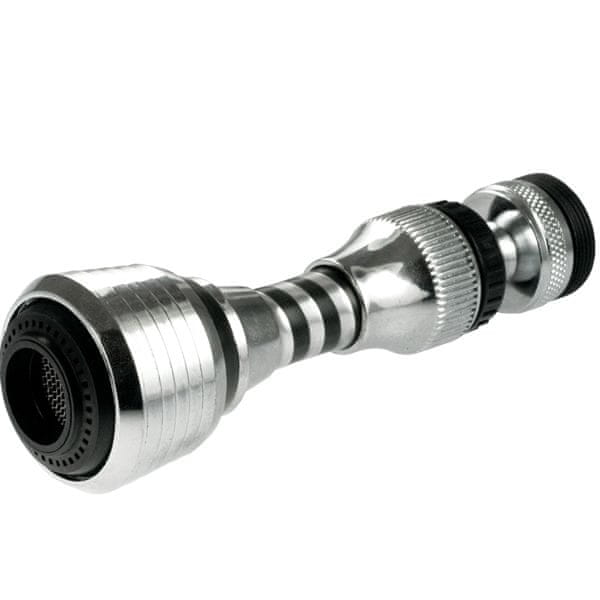 Ta aerator je bil zasnovan za zmanjšanje nepotrebne porabe vode. Rotacijski razpršilec je idealen za kuhinjo. Tehnični podatki: – Material: plastika; – Velikost navoja: F22GW ali M24 GZ; – Dolžina: 15 cm; – Teža: 40 g; – Tesnilo priloženo.