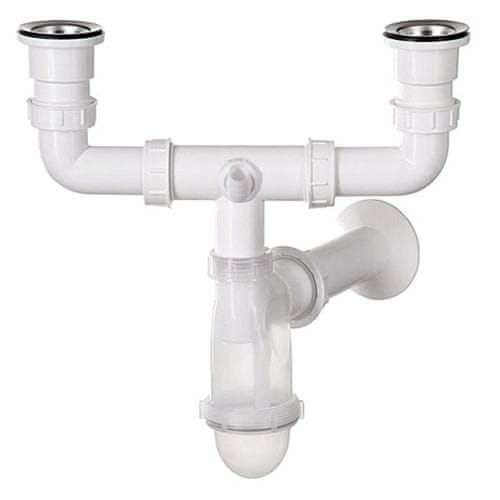 Dvojni prozorni sifon za pomivalno korito + priključek za pomivalni stroj Celoten opis