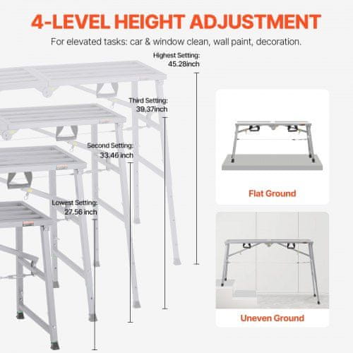 VEVOR Delovna platforma nastavljiva višina zložljiva stopniščna lestev 1450x495x700 mm