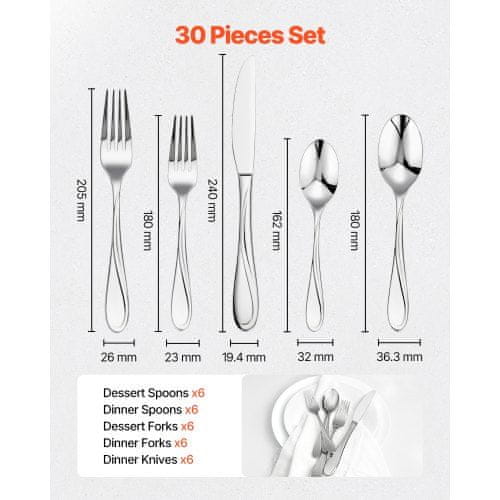 VEVOR Komplet jedilnega pribora 30-delni iz nerjavečega jekla