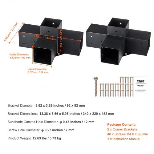 VEVOR Komplet nosilcev za pergolo štiristranski kot 102x102 cm črn zunanji pribor