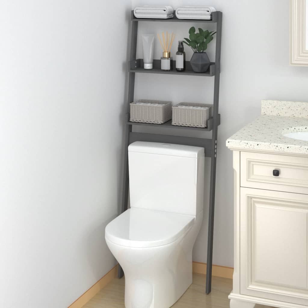 Vidaxl Stojalo za kopalnico sivo 63,5x32x179 cm trdna borovina