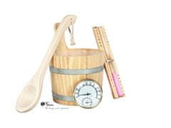4-delni set za finsko savno – vedro in zajemalka za vodo, termo-higro meter, peščena ura.
