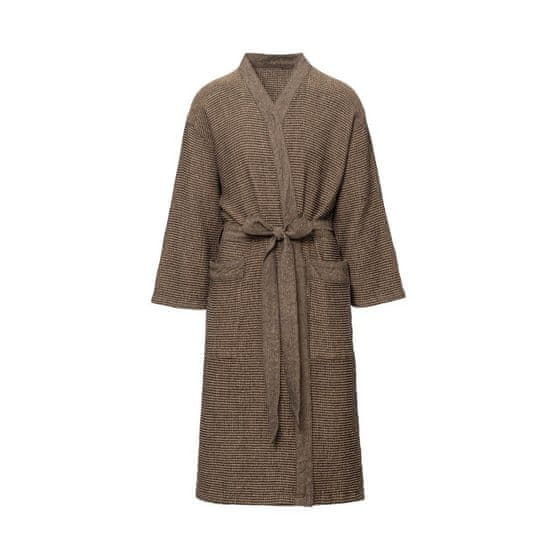 Udoben kopalni plašč z obrobami in pasom. Tekstil za savno Kenno je izdelan iz recikliranega bombaža, ki daje tkanini naravno mehkobo in živahno teksturo.
