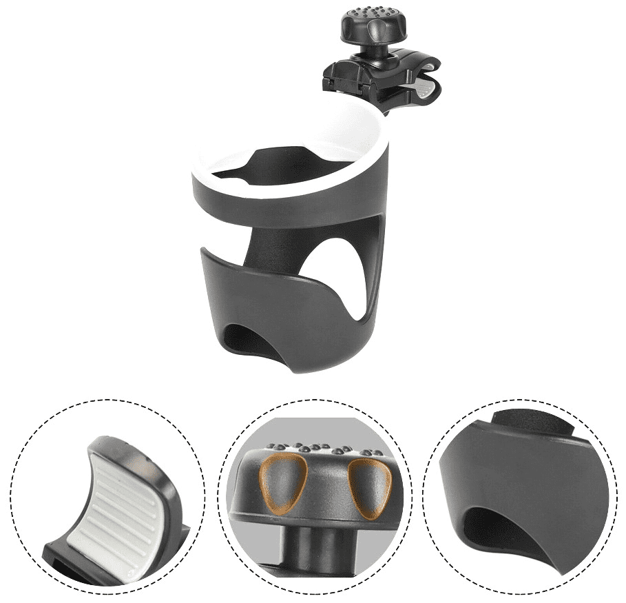 Držač za steklenico za voziček na kolo je robusten in praktičen dodatek, ki ga enostavno pritrdite na okvir vozička ali kolesa. Idealno je za različne aktivnosti, kot so kolesarjenje, sproščanje na vrtu ali sprehodi s vozičkom.