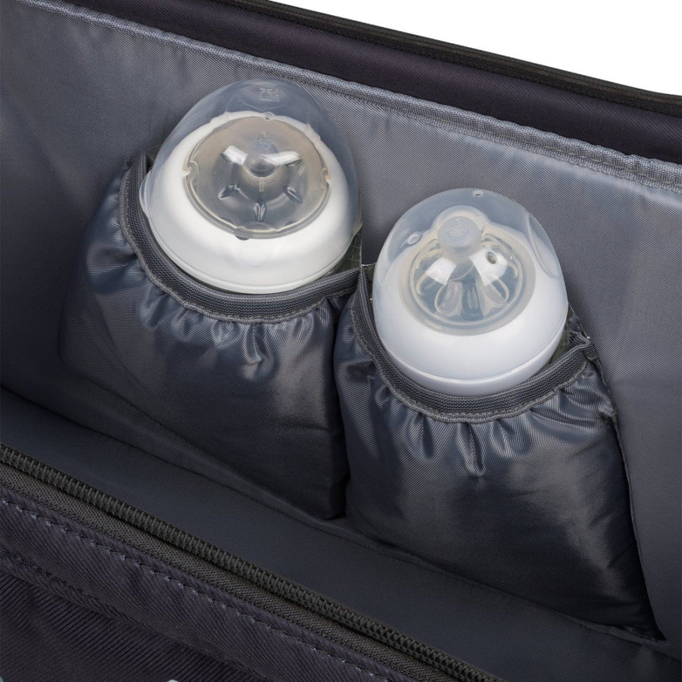 Mere: 53 × 31 × 23 cm prostornina 20 l 100 % poliester Zapenjanje z zadrgo zunanji žepi: 2 žepa na zadrgo, 2 stranska žepa za dodatke Notranjost: 1 velik žep na zadrgo, 1 velik žep na velcro, 2 žepa za steklenico naramnica za praktično nošenje trakovi za pritrditev na ročaj vozička Vključuje: podlogo za previjanje in toaletno torbico