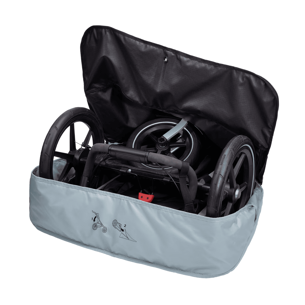 Thule Stroller Travel Bag je kompaktna in zložljiva potovalna torba „Large“ velikosti (velika), namenjena enostavnemu transportu večjih modelov vozičkov Thule (npr. Urban Glide 3/2, Glide 2/3, Sleek). Torba omogoča shranjevanje vozička brez odstranjevanja koles, ima podložene vogale za zaščito in je opremljena z ročajem in naramnim pasom za udobno prenašanje. Celoten opis
