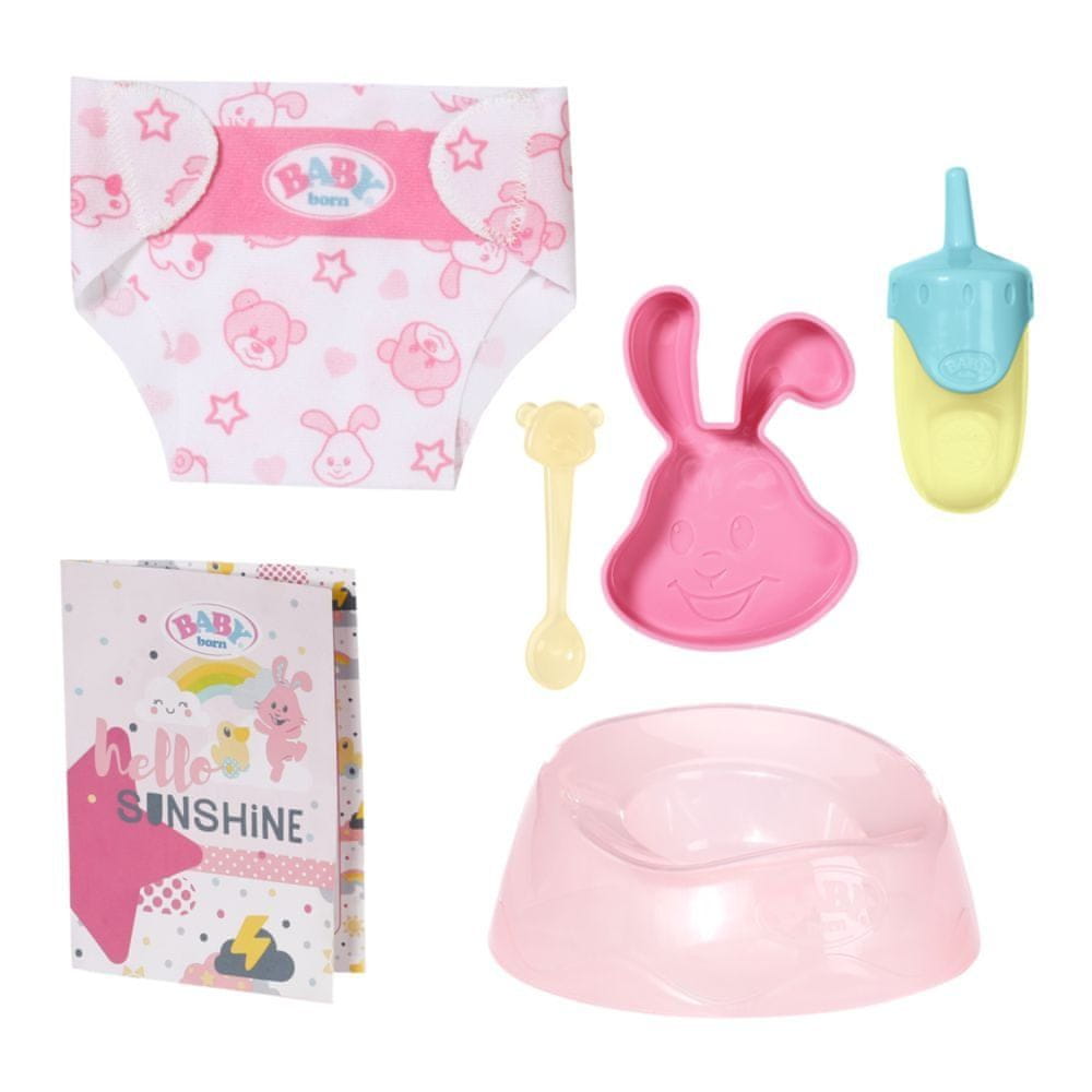 • Ima 7 starosti primernih funkcij: lutka BABY born Little lahko pije, se posrka, gre na stranišče, se kopa in zapre oči. Ima gibljive sklepe in je opremljen s čarobno dudo. Z vsemi funkcijami se lahko igrajo majhni otroci.