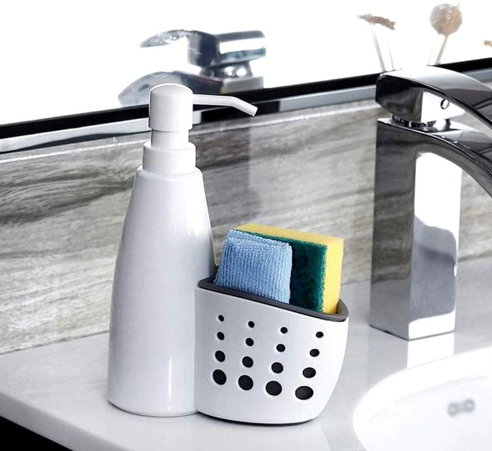 Univerzalni dozer za tekočine 2 v 1 je eleganten in praktičen dodatek, ki se odlično poda v vsako kuhinjo ali kopalnico. Zasnovan je za uporabo z različnimi tekočinami, kot so milo za roke, šampon ali sredstvo za pranje posode. Zaradi svojega univerzalnega dizajna in barvnega izvedbe v beli in sivi barvi se enostavno poda v vsakšen notranji prostor. Dimenzije 16 × 21 cm zagotavljajo, da ta kompaktni dozer prihrani prostor in prinaša udobje. Poleg tega je opremljen s posodo za higienično shranjevanje gobice ali drugih kopalniških dodatkov.