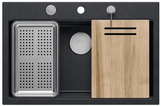 QUADRON Kuhinjsko korito MARC WORKSTATION z dodatki, črn