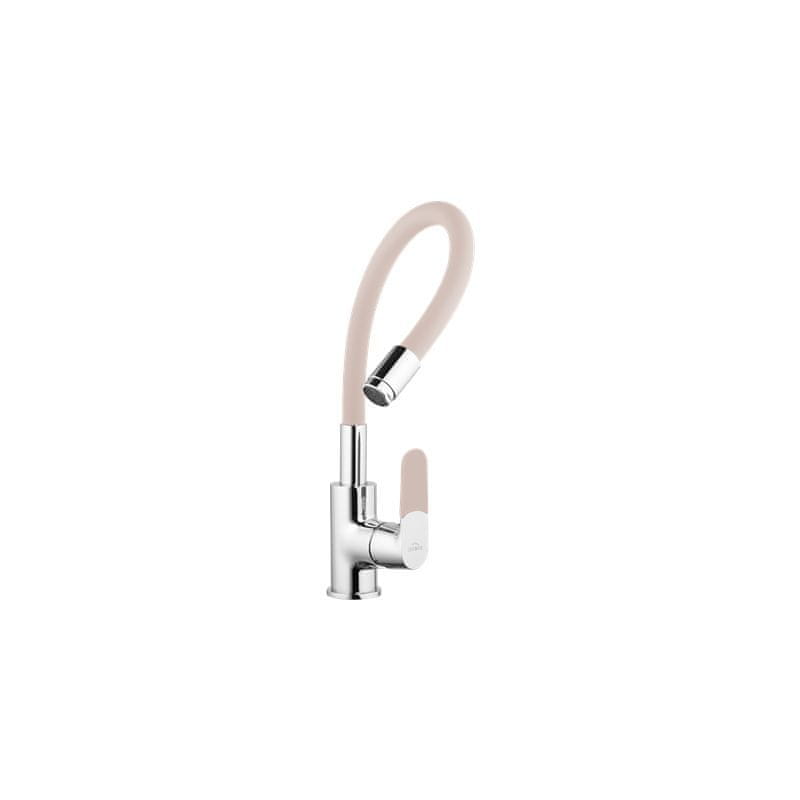 Enoročna kuhinjska armatura Alvito JOGA v bež barvi ima prilagodljiv izliv s spominom oblike in silikonsko prevleko. Celoten opis