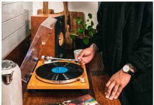AT-LPW30TK ima pogon na jermen in zagotavlja optimalno ter visokokakovostno reprodukcijo zvoka. Ponaša se z elegantno antiresonančno MDF (srednje gosto vlakneno) ploščo v barvi tikovine in motorjem, ki zagotavlja natančno vrtenje pri hitrosti 33–1/3 ali 45 RPM.