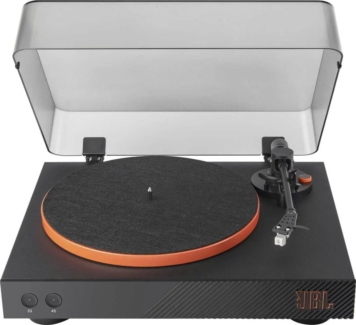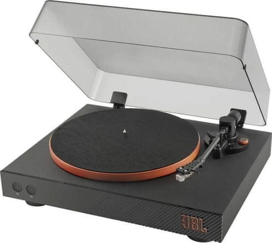 Gramofon JBL Spinner lastnih zvočnikov, vendar jih lahko preprosto priključite prek izhoda RCA ali prek brezžične tehnologije Bluetooth s kodiranjem AptX-HD™. Ponaša se z vrtljivim aluminijastim krožnikom, ki ga poganjata vratni pogon in motorček z optičnim senzorjem na dnu. Navdušuje z možnostjo nastavitve uravnoteženja uteži, vgrajenim predojačevalnikom in nastavljivim antiskatingom. Gramofon je prav tako opremljen s pokrofom za zaščito pred nabiranjem prahu.