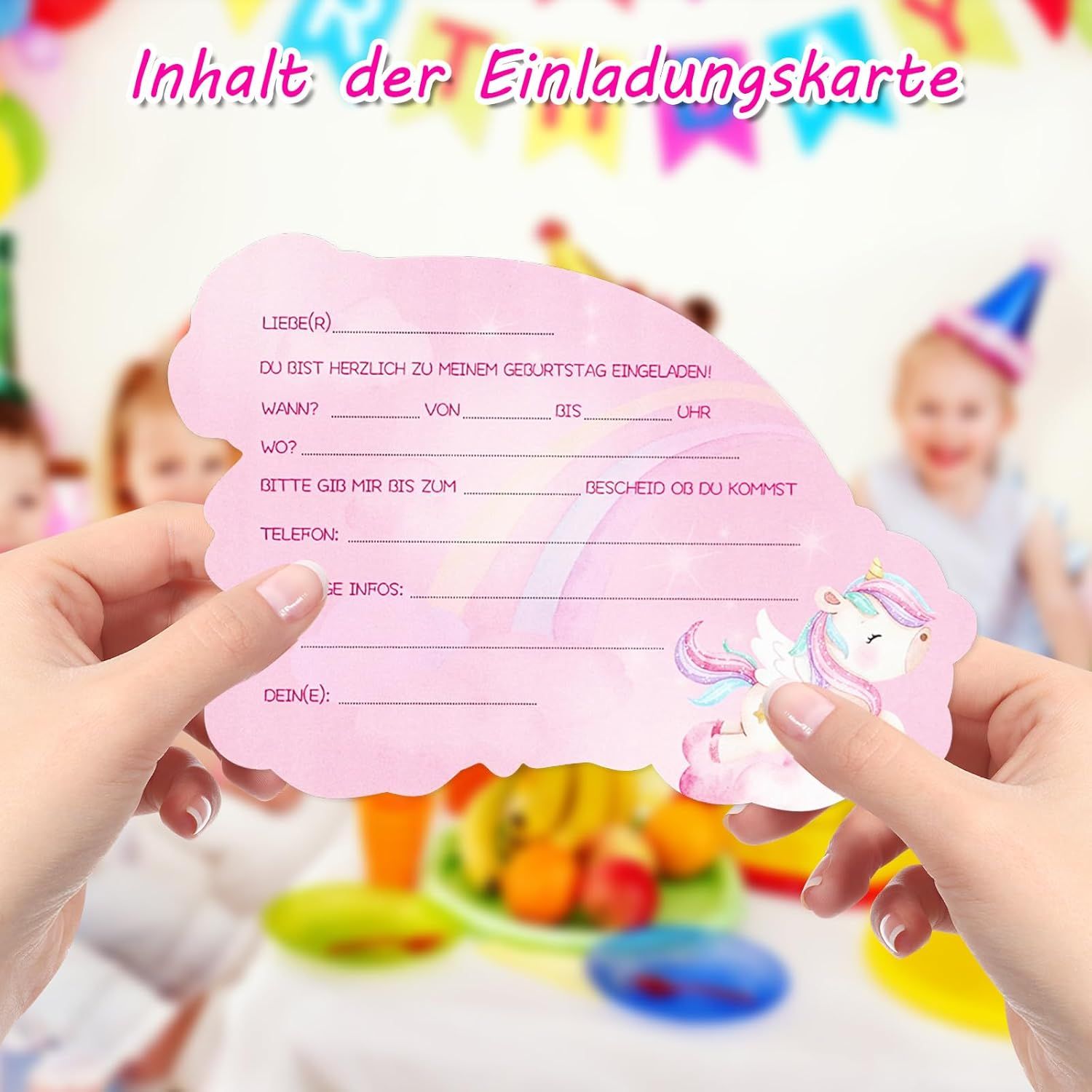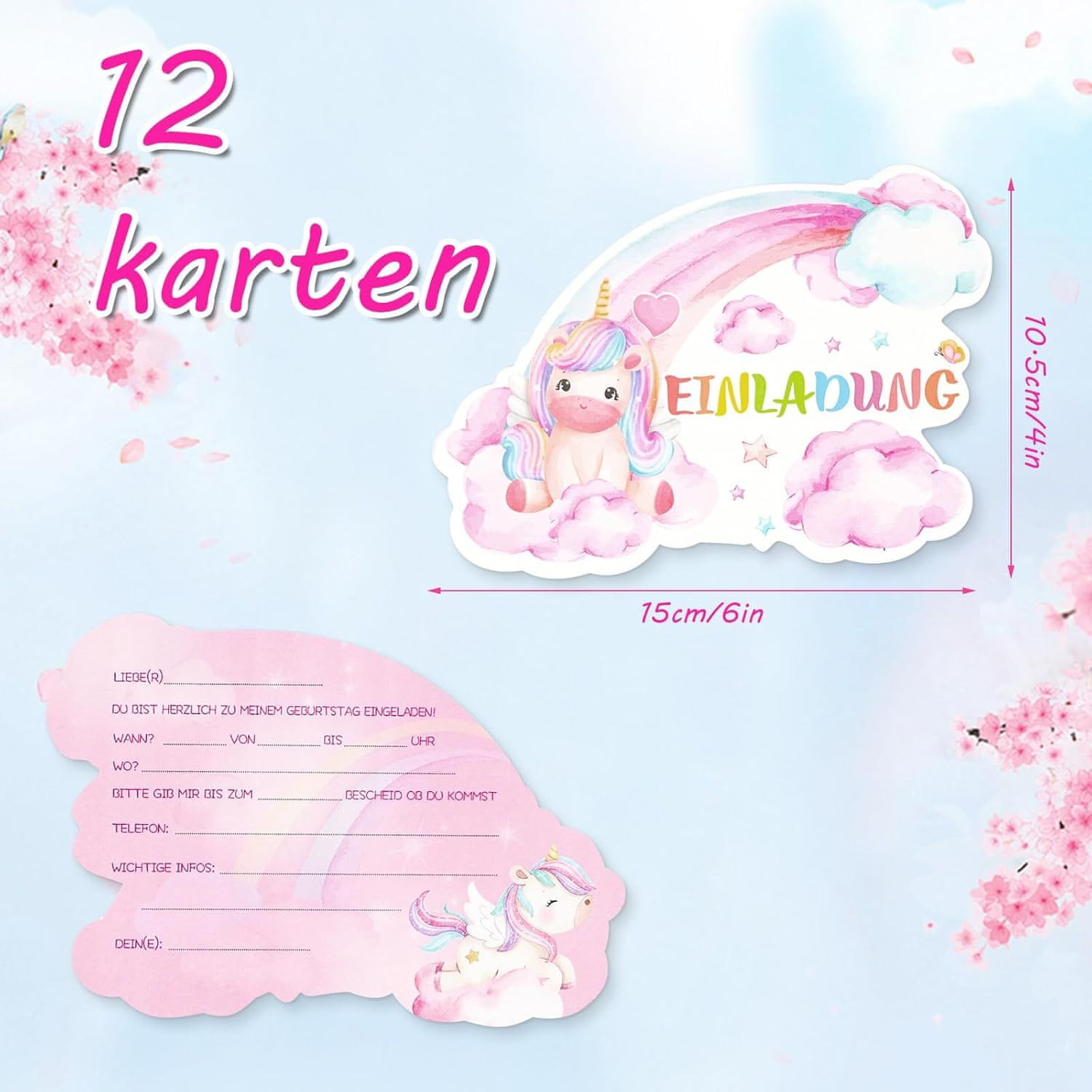 • Vsebina paketa: 12 samorogovih vabil za povabilo gostov na rojstnodnevno zabavo na temo samoroga.