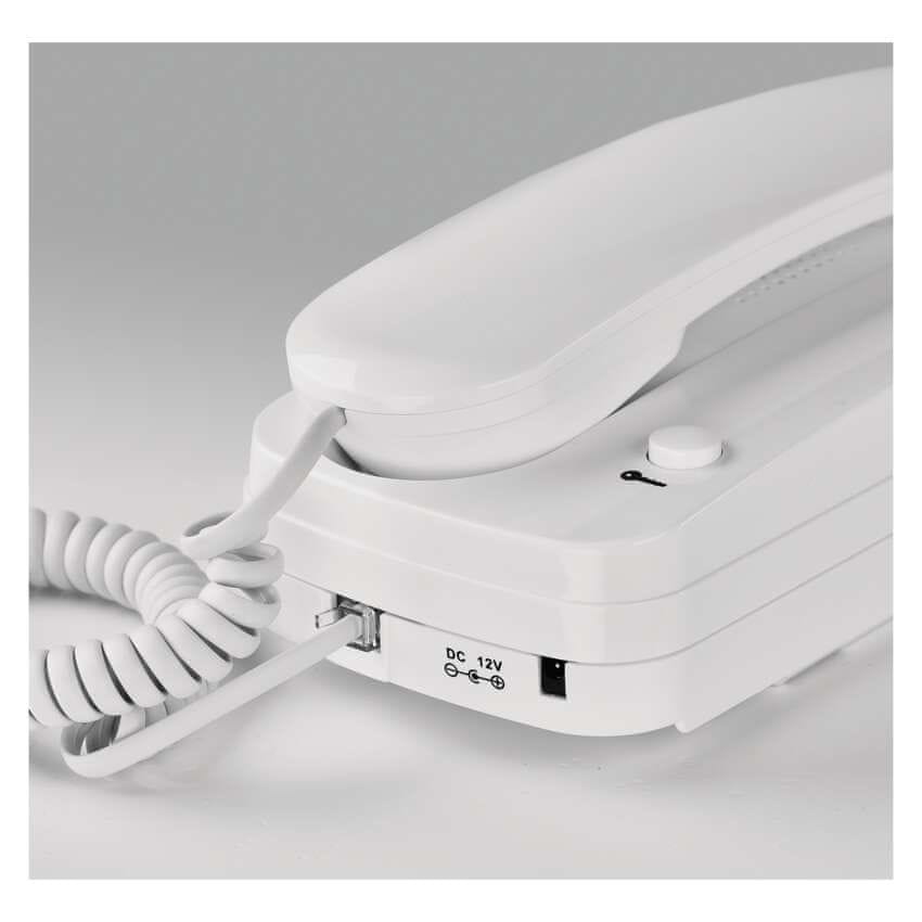 izdelek: set avdio vratar • število tipk: 2 • upravljanje ključavnice in pomika vrat: samo vratna ključavnica • napajanje: 12 V DC • priporočena kabelska napeljava: UTP/SYKFY/2 × 0,5mm • barva: bela • material vratnega panoja: kovina • material slušalke: plastika • montaža: podometni Celoten opis