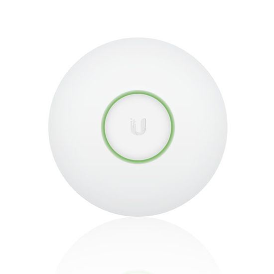 Notranja dostopna točka Ubiquiti UnifiAP LR (Long range). Preko priloženega kita jo enostavno namestite na strop, kjer se napaja preko PoE adapterja. Ker dizajn spominja na stropno luč, izdelka skoraj ne opazimo in se popolnoma zlije z okolico. PoE podpora omogoča prenos tako napajanja, kot podatkov preko Ethernet kabla, adapter je priložen. LED osvetlitev, pa omogoči lažje spremljanje naprave, kadar pride do napake. Unifi AP ponuja domet do 183m in hitrosto do 300 Mbps. Sistem več dostopnih točk, prinaša enostavno prehajanje uporabnika med sobami in prestavljanje med več dostopnimi točkami brez interakcije uporabnikove naprave. UniFi Controller omogoča nadzor tisočih dostopnih točk in upravljanje spletnega prometa. Urejamo lahko pokritost s signalom ali celo nadziramo več lokacij. Wireless Uplink, pa nudi povezavo med dostopnimi točkami za podaljšan domet. Portal za goste omogoča avtentifikacijo, postavitev vroče točke, in zmožnost uporabe zunanjega strežnika. Vse UAP dostopne točke omogočajo:
