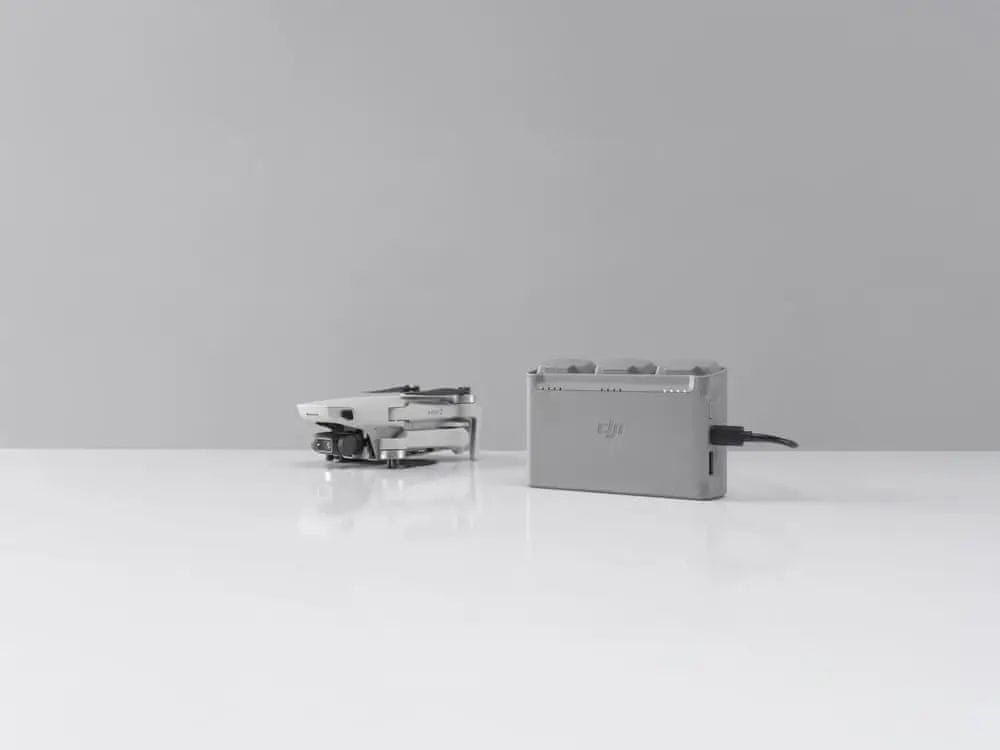 Dvosmerno vozlišče polni do 3 baterije zaporedoma za dron DJI Mini 2. Z uporabo DJI 18W USB polnilnika lahko v približno 270 minutah v celoti napolni vse tri baterije.